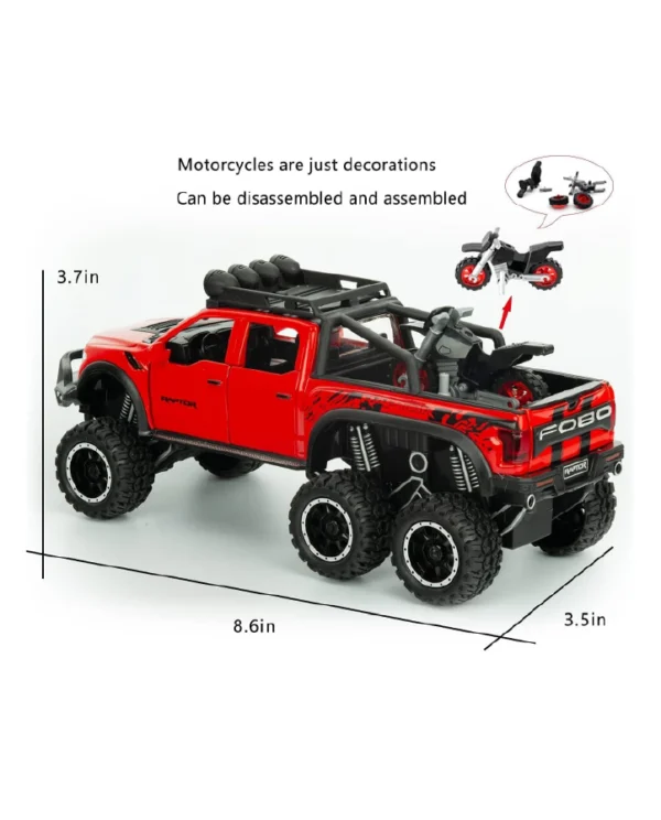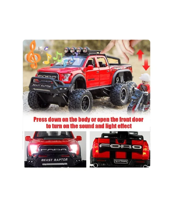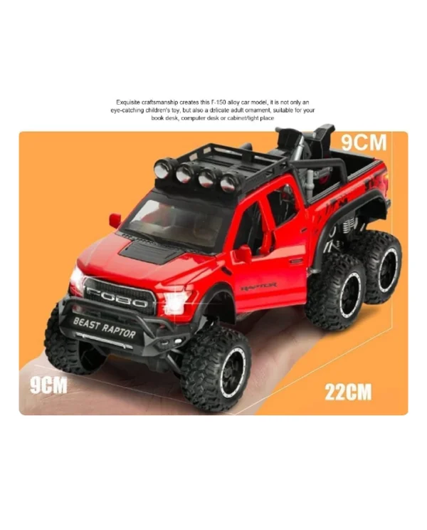 - Realistic Design: This 1:28 scale model replicates the iconic F150 Raptor pickup truck with precise detailing, making it a perfect collectible or plaything for kids who love cars.