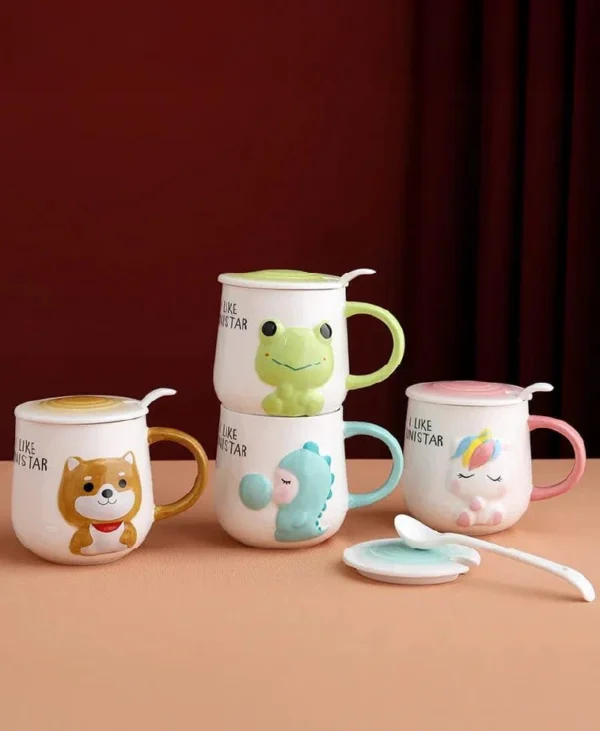 - Ceramic Milk Mug for Kids, Coffee / Milk/ Tea Mug for Kids Cartoon Print Mug for kids With Handle and Lid – 400 ML – Multicolor