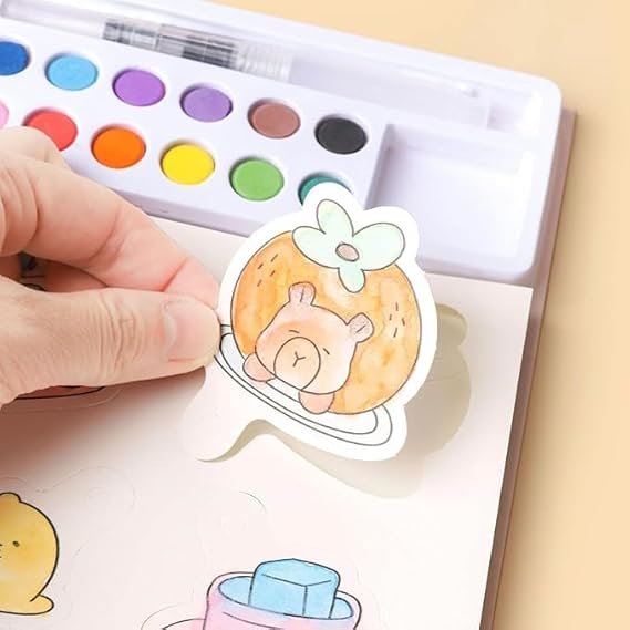 - Package Includes – SWADEC watercolor painting book set has includes – Solid Watercolor Paints x12, Doodle Paper x24, Paint Brush x1, Color Card Paper x1.